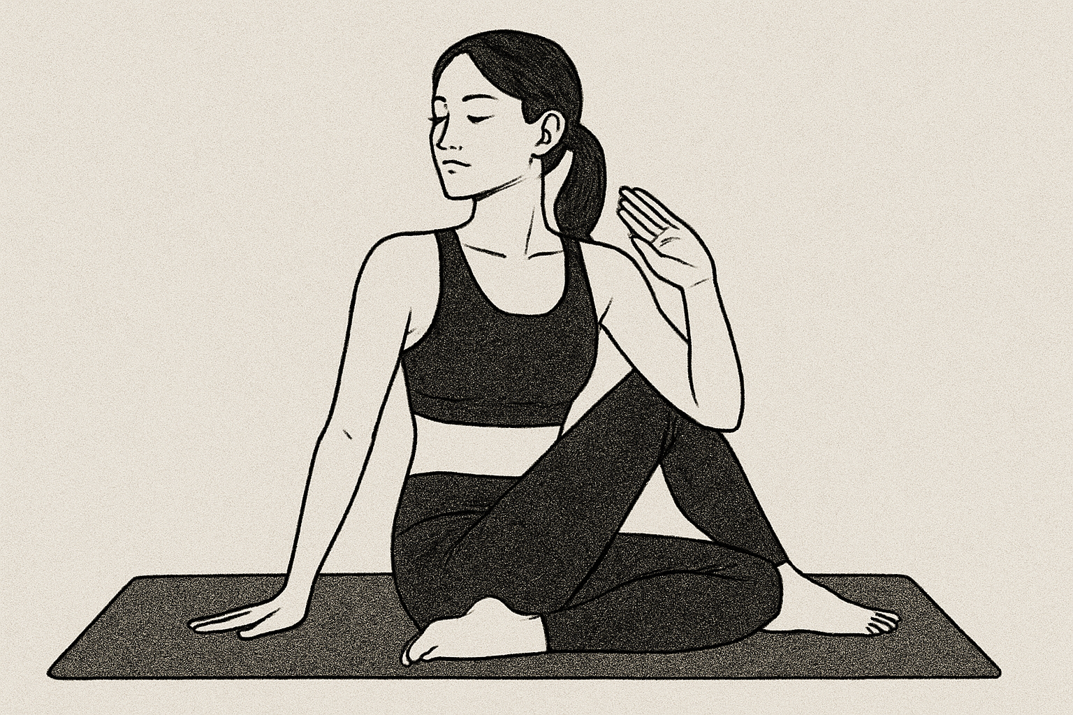 - 片膝を立てて床に座り、もう片方の足を後ろに曲げる